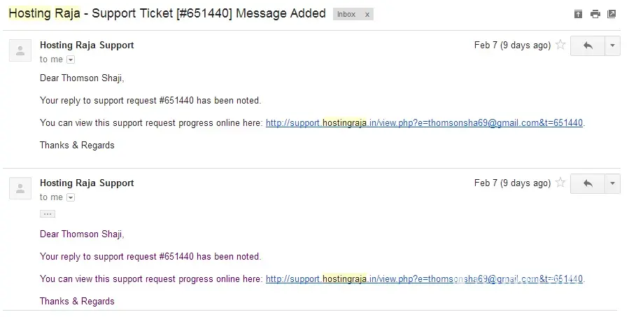 we have bought domain from hostingraja.in (duratuf.co.in) after every 5 days mails stopped no response..they said raise ticket if we raise ticket we didn't received any response. Sales persons are useless never seen such bad and false company who only wants to grab money.