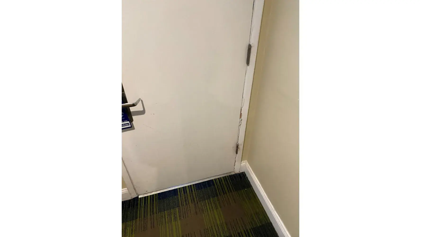 Holes in the internal door, pictures broken on the wall, dirty