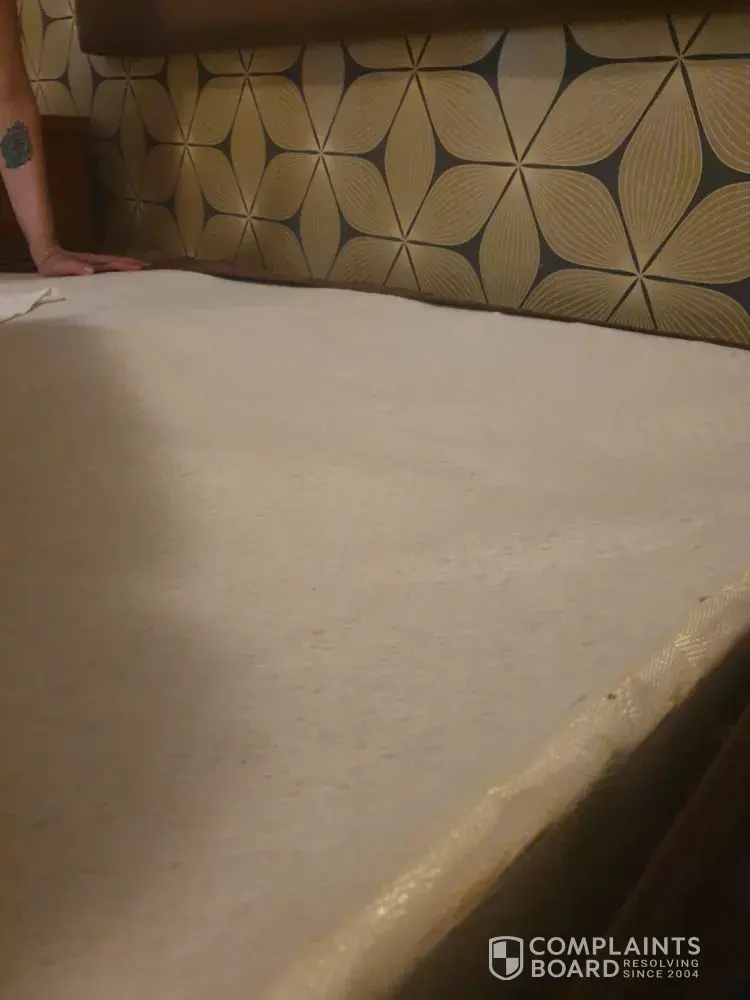 In the morning, we checked the bed and realized that it had no mattress: it was simply a boxspringbed with a topper only. Laying on the bed, it felt like being on a camping air mattress: one of us would move a just little, the other would literally jump and the worst was that we were feeling each bed spring. Something with this bed setup was definitively not right and in no way was it '4 star hotel bed'!
