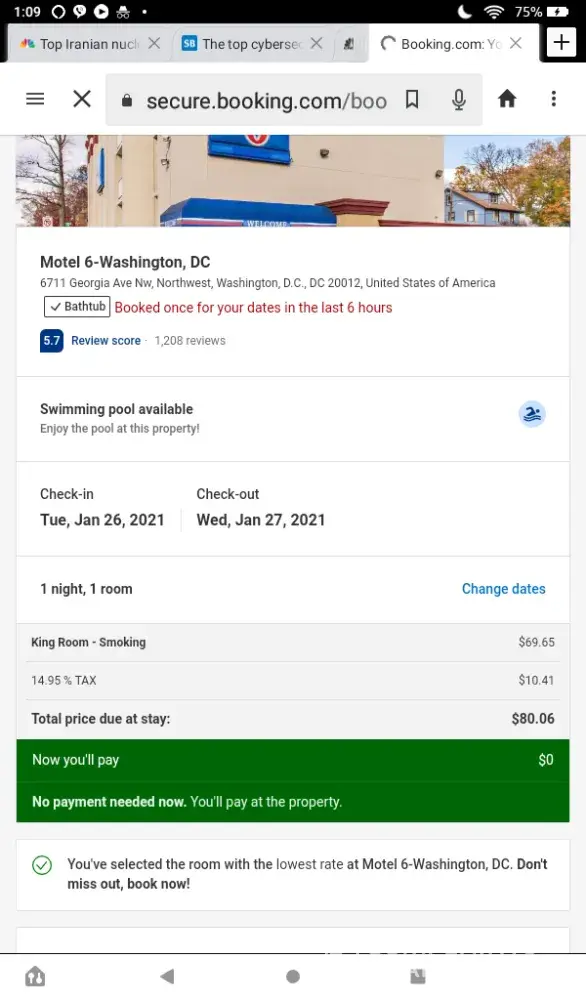 Refund for price matching for a stay at motel 6 in washington dc