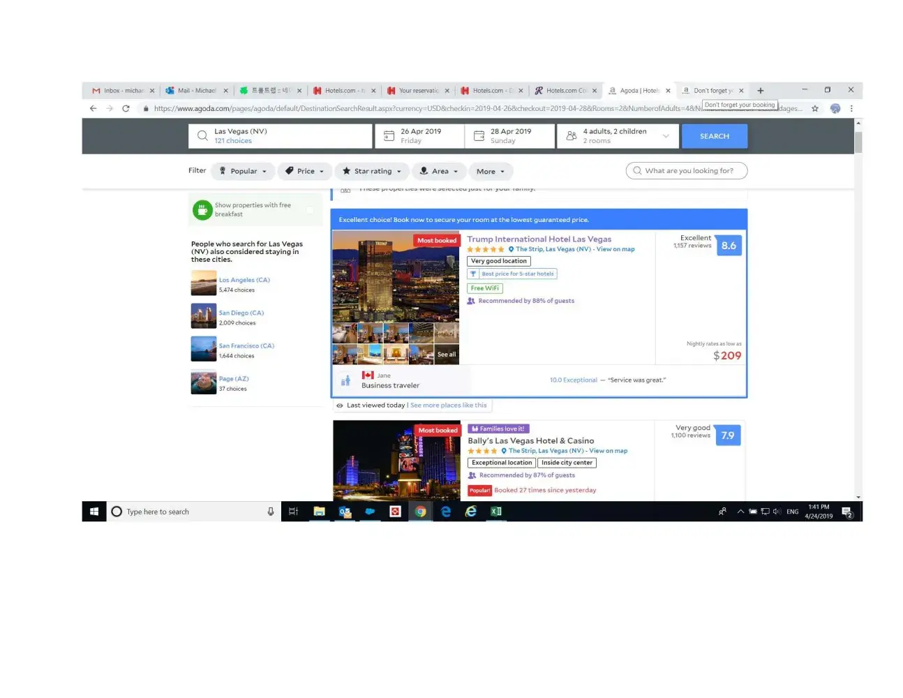 I had booked with hotels.com for my trip to Las Vegas (4/26/2019~4/28/2019) although I saw lower rate on Agoda.com because Hotels.com offered price match "guarantee" policy. However, when I submit my request to their customer service, it's being denied/rejected with excuses like "oh... the rate that's showing on Agonda.com does not include fees and taxes. Also your captured screen shot does not include cancellation policy." Fist of all, Hotels.com charged separate amount for taxes and fees. Mine was 134.48 on top of 251.28 per night per room. In addition, on the page where you submit your price guarantee request does NOT require you to capture cancellation policy.