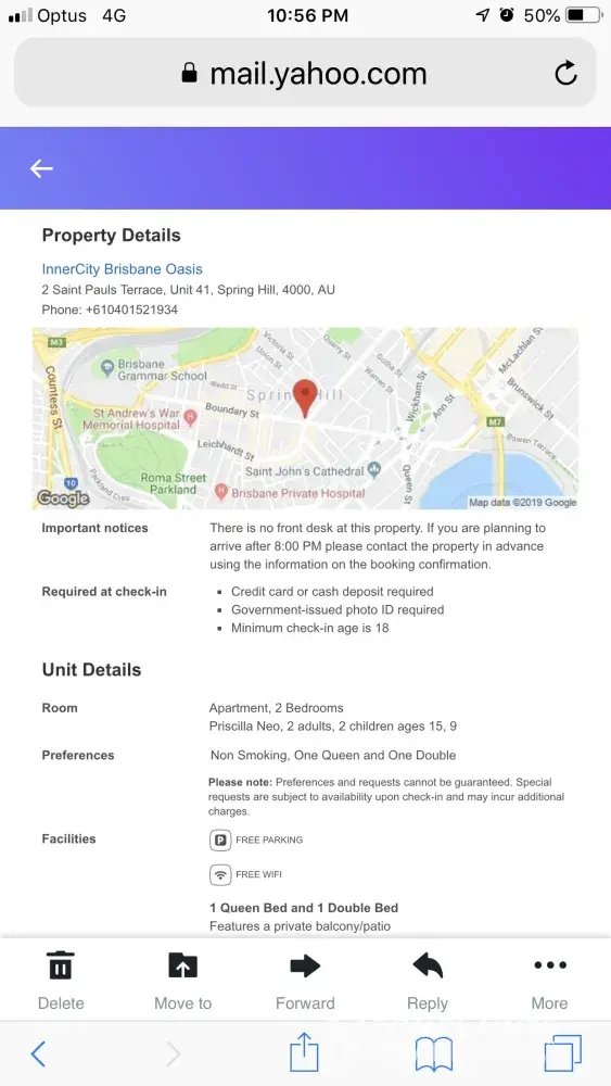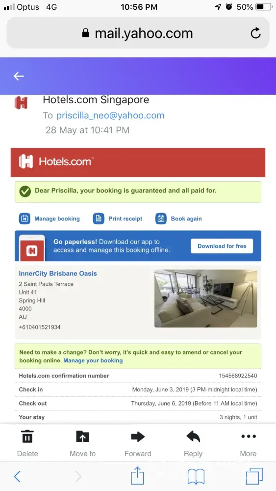 I have made a booking for an apartment through hotels.com app online on 1 January 2019 and confirmation for the booking was sent to my yahoo and the payment was also made.