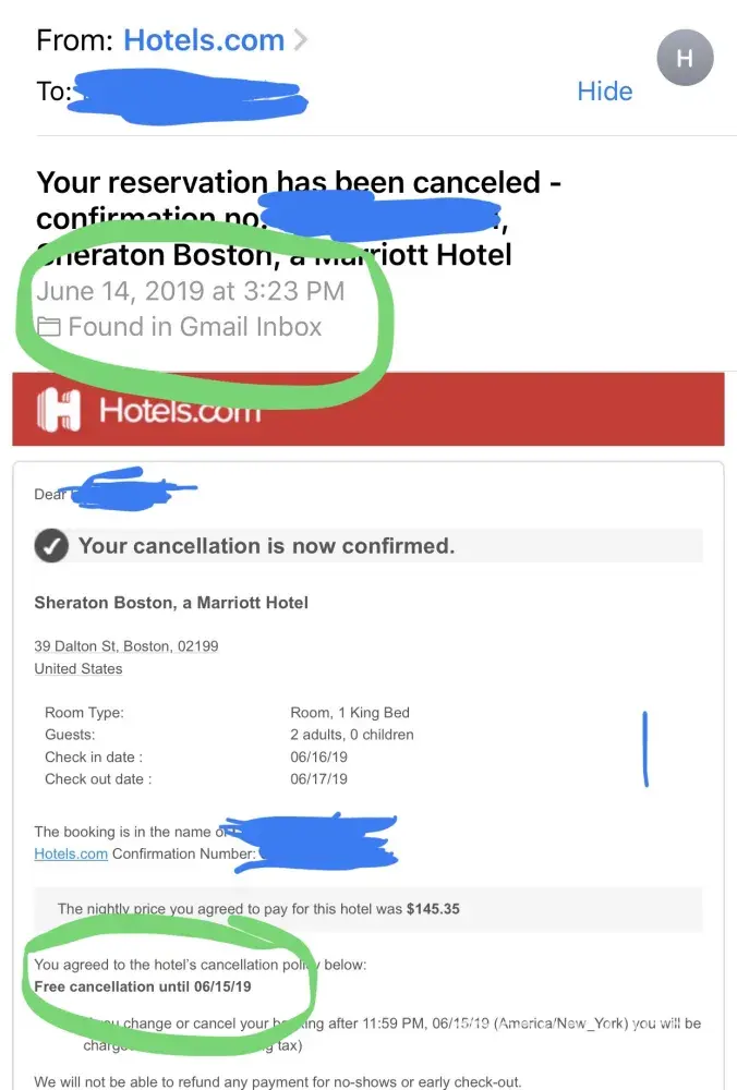 hotel stay cancelled