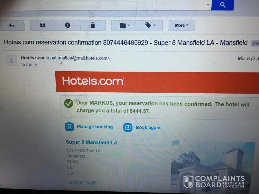 Hotels.com hotel booking I did not make on hotels.com