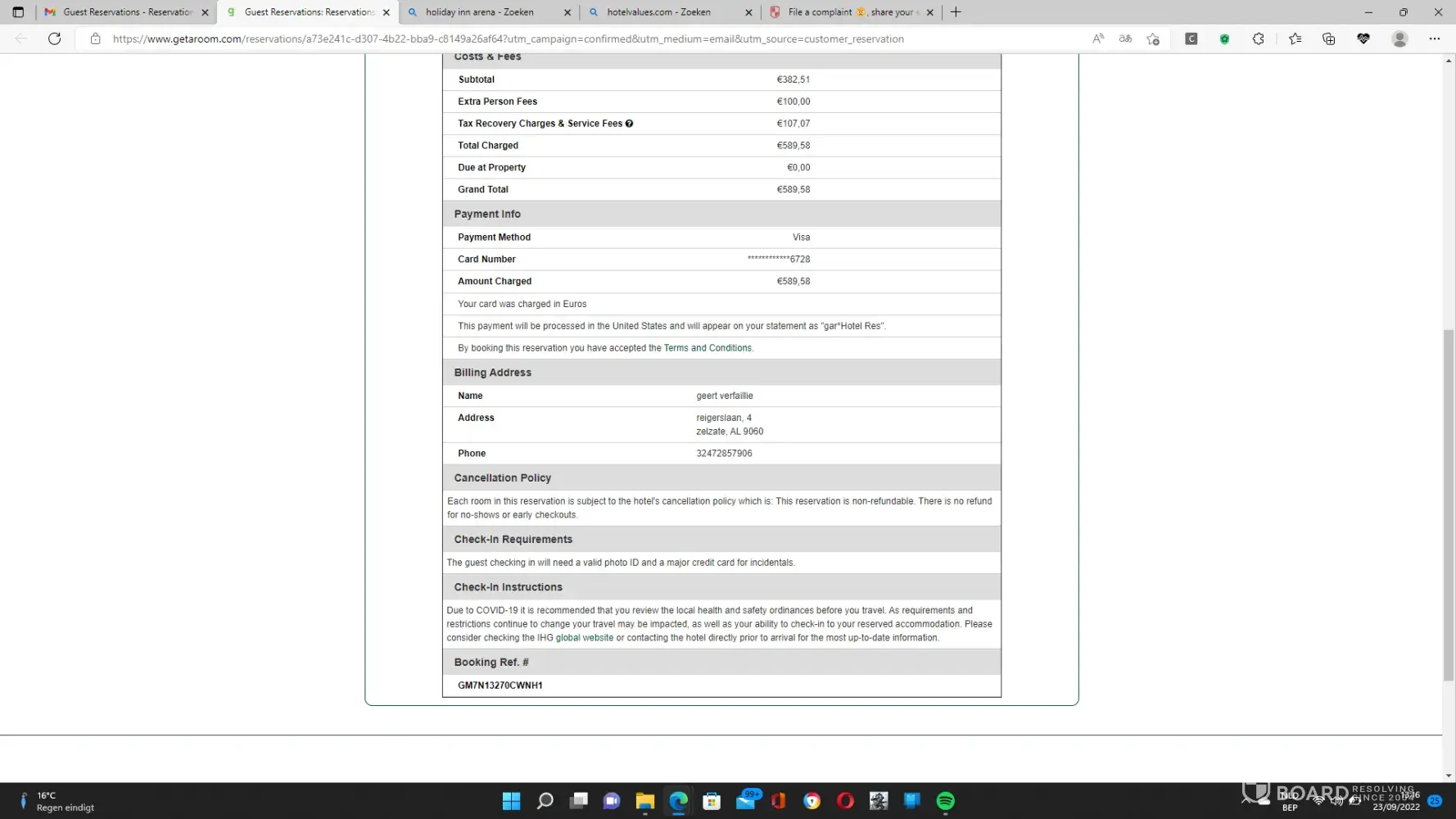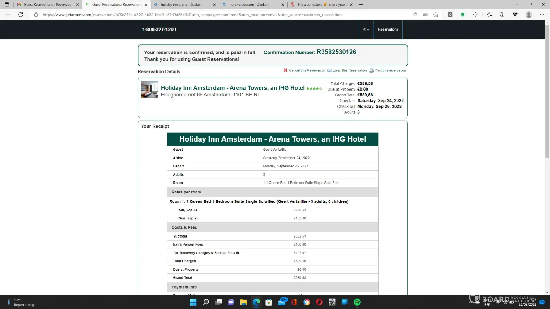 I have booked and payed a hotel reservation in amsterdam for 24/09 till 26/09,nothing is arranged