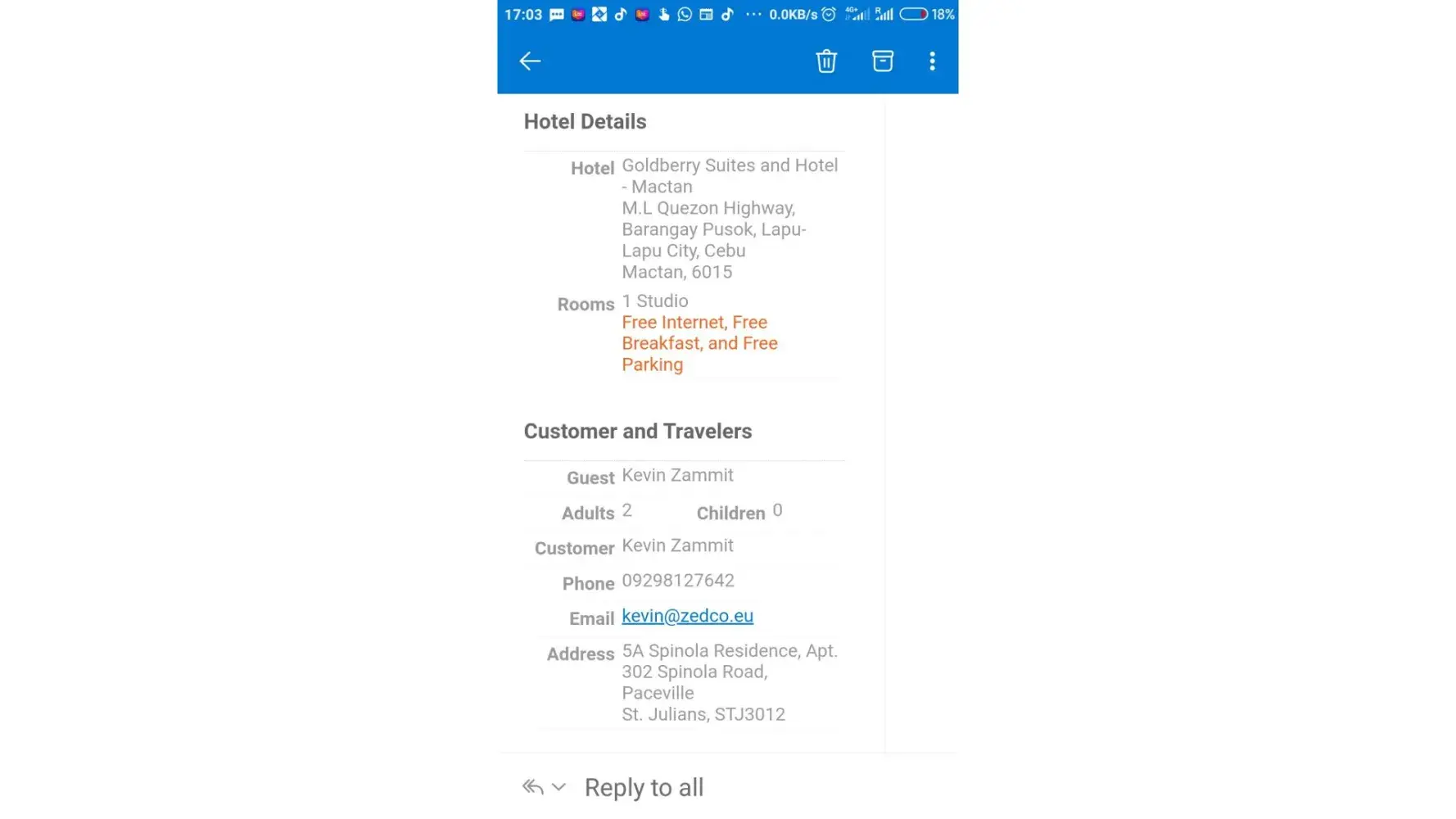 Reservation R4511929780 for 18/10/23