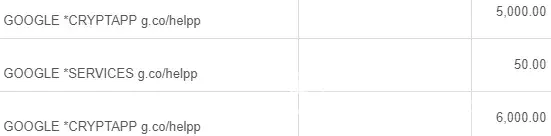 Rs.6000, 5000, 50 in INR, I checked in internet banking it is showing like Google *services, Google *cryptapp,
