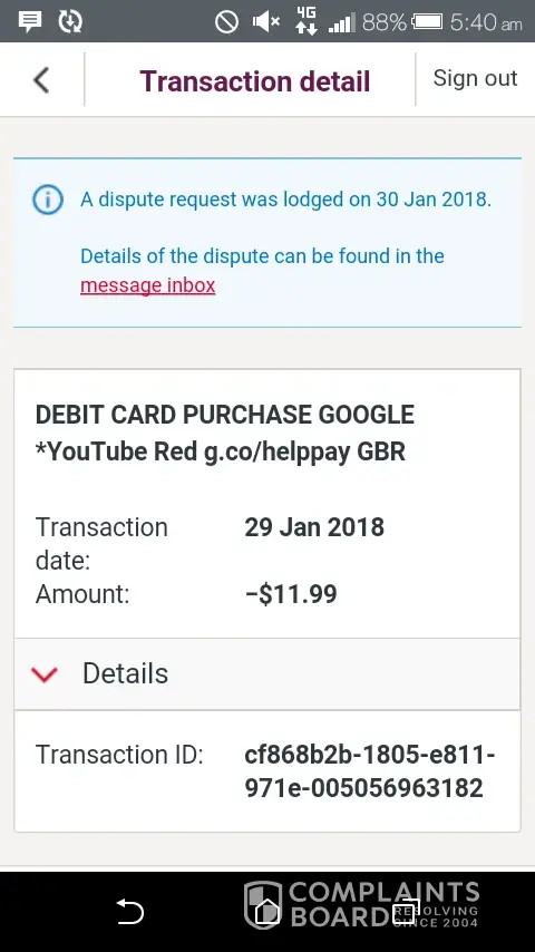 I have looked at my wetpac bank statement and I've been charged money for YouTube red on the 29th of Jan 2018 which I haven't been on and I'd like a refund.