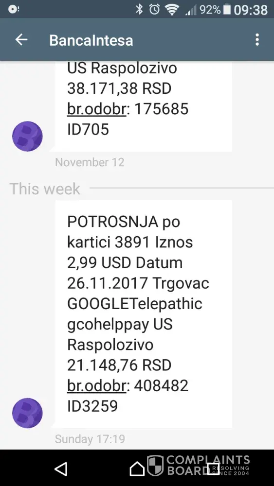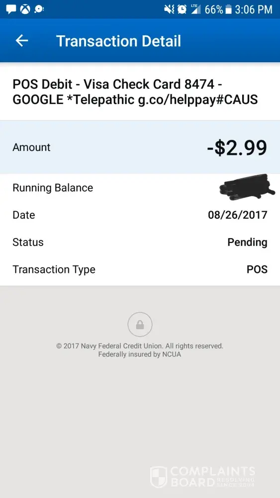 There has been mutiple withdraws from my acct for telepathic .g.co/helppay# I do not know what this is for it's charging me 2.99 it happend many times now and I would like all my money back. And I can't find this charge in my Google acct history just my bank card history. Plz resolve this issue and return all my money.