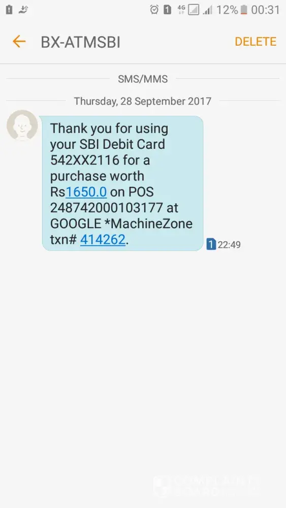 My a/c has been deducted with rs 1650 via debit card (no [protected]) purchase on pos [protected] at google*machine Zone with txn# 414262. This purchase I have not made. Please look into it and do needful.