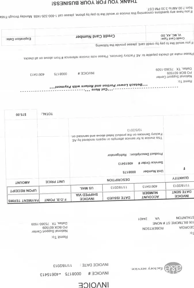 A service tech came out while we were not home and he was told to call 20-30 minutes prior to arrival so someone would be there. We had to reschedule. The second service guy came out and my husband told him what was wrong with the refrigerator. He was there less than 2o minutes and ordered the parts. The third tech came out and installed 2 parts in less than 1 hour and we were charged $220.00 for labor. We did not have to pay for parts, at least that is what we were told. My husband and I were in shock when he told us the price. I called A&E and was told there is nothing they can do. They do not charge by the hour. They charge by the code for that particular part. I told them they are ripping people off and they lady was very unconcerned. I would not recommend these people to anyone.