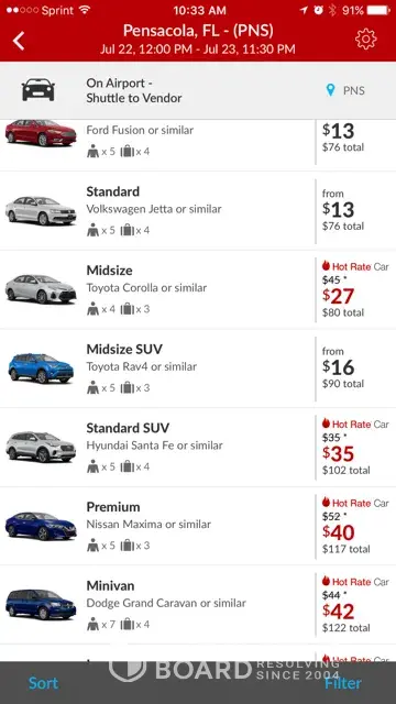 Was looking for a car rental for July 22 and 23 in Pensacola, FL and the app results presented a $40/day "Hot Rate" for a total of $117 for a premium car. However, when I processed the booking, I was charged $243.62 (including the 2 days of insurance I purchased). Itinerary # is [protected]. I immediately called customer service and was given the classic "our rates change from time to time" response. I then asked to speak with a supervisor who echoed the same sentiment. After 40 minutes on the phone, I simply asked what was the current rate available for the exact same car class. I was told $39.82/day as a standard rate. I asked for a total price if I were to book the same reservation with him right now and he said $125. He then reiterated that he couldn't cancel my booking because it was a "Hot Rate", but acknowledged that he finally saw what I was talking about and admitted to an "error in the system". He stated I should send a screenshot of the search results to customer support to initiate research and they would respond with resolution within 7 to 10 days. After 3 weeks and 3 emails, I've still received no response. I simply want the difference between what was charged and what was presented in search results returned to my card.