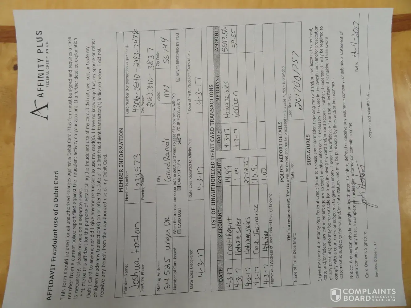 My name is Investigator Robin Johnson. I'm with the Itasca County Sheriff's Department. I'm currently investigating a fraud complaint in which Hotwire received an unauthorized payment of over $5, 000 from a debit card. On 04-03-17 somebody booked with Hotwire using a Visa Debit Card from Affinity Plus Federal Credit Union (card #[protected]). The owner of this card didn't authorize the transaction. Attached is a copy of the bank Affidavit with the victim's information and fraudulent transaction information. You can contact me at email: robin.[protected]@co.itasca.mn.us or phone: [protected].