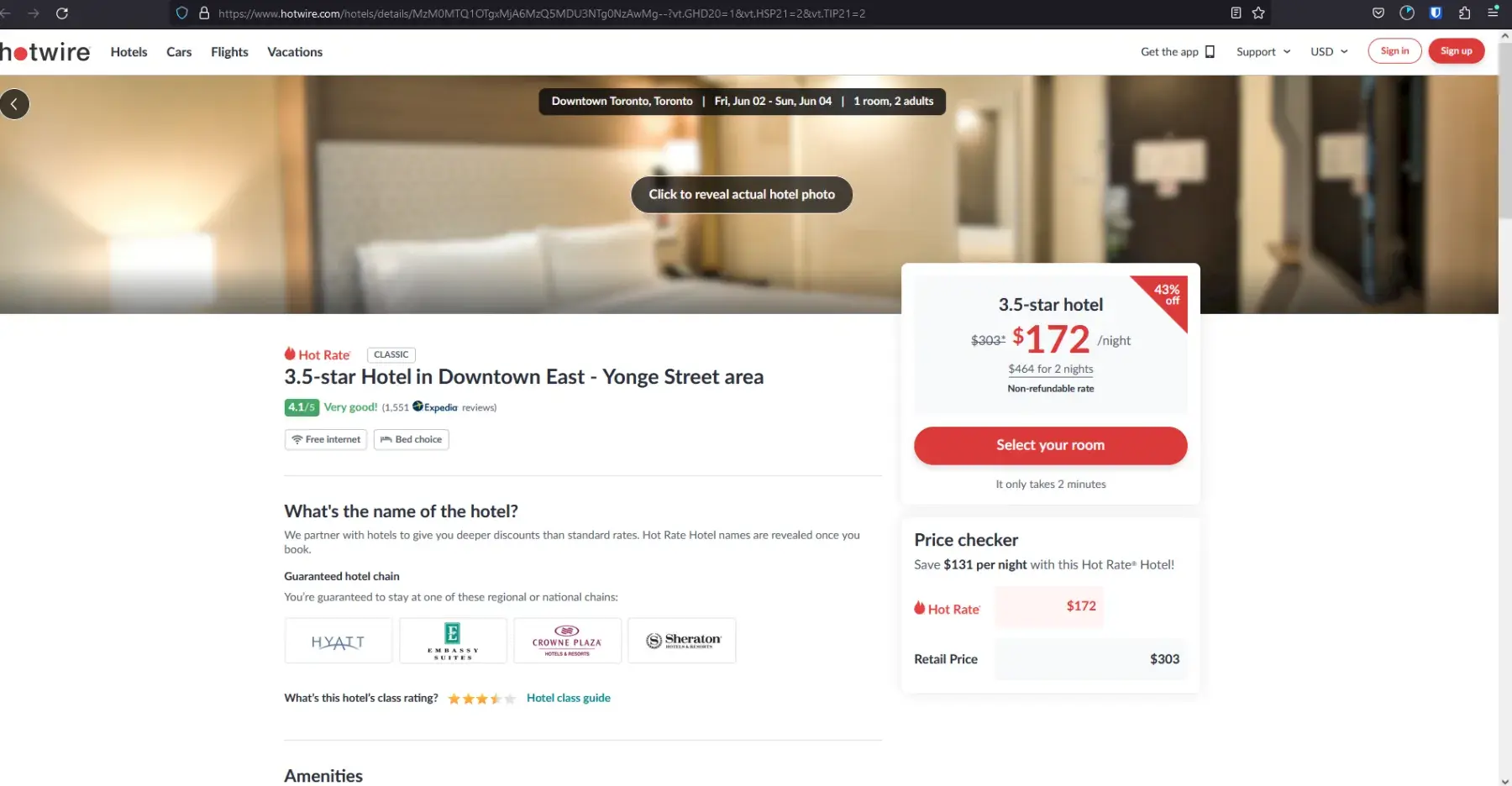 Honestly, I wouldn't recommend using Hotwire. They're just trying to make a quick buck off of unsuspecting customers. Stick with a more reputable site and read the fine print before you book anything.
