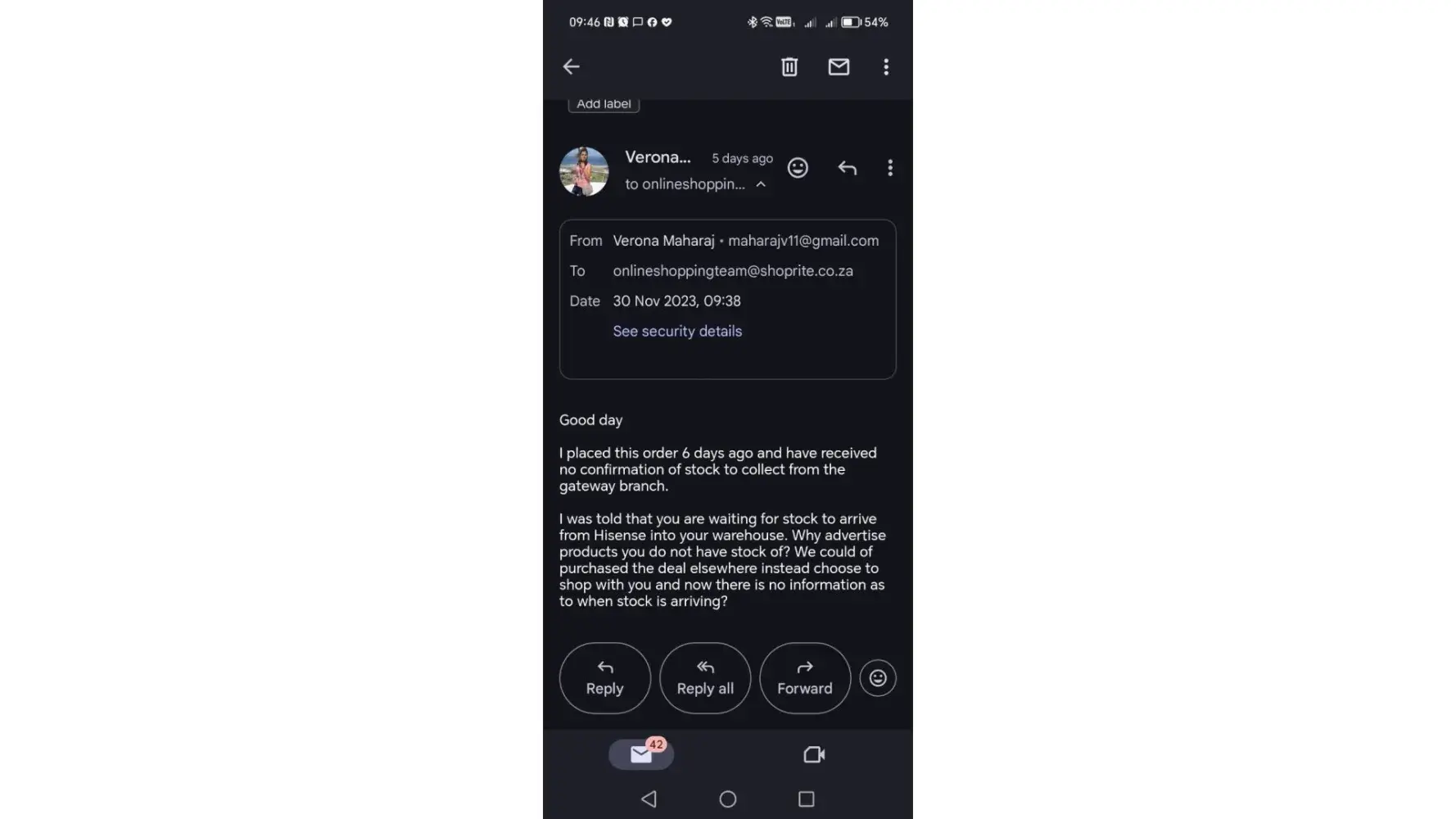It is extremely disappointing to be running around in circles with no response from House and Home telephonically and via email. We placed an order on 24/11/2023. This was a Black Friday special. Firstly this had no indication that there is no stock on hand. Only to be told after payment, there is no stock and we will be informed when stock arrives. Today is 05/12/2023, no response, no update and still no stock yet when checking your website the very same item is advertised indicating that stock is available. There is absolutely no answer on any numbers on your website.