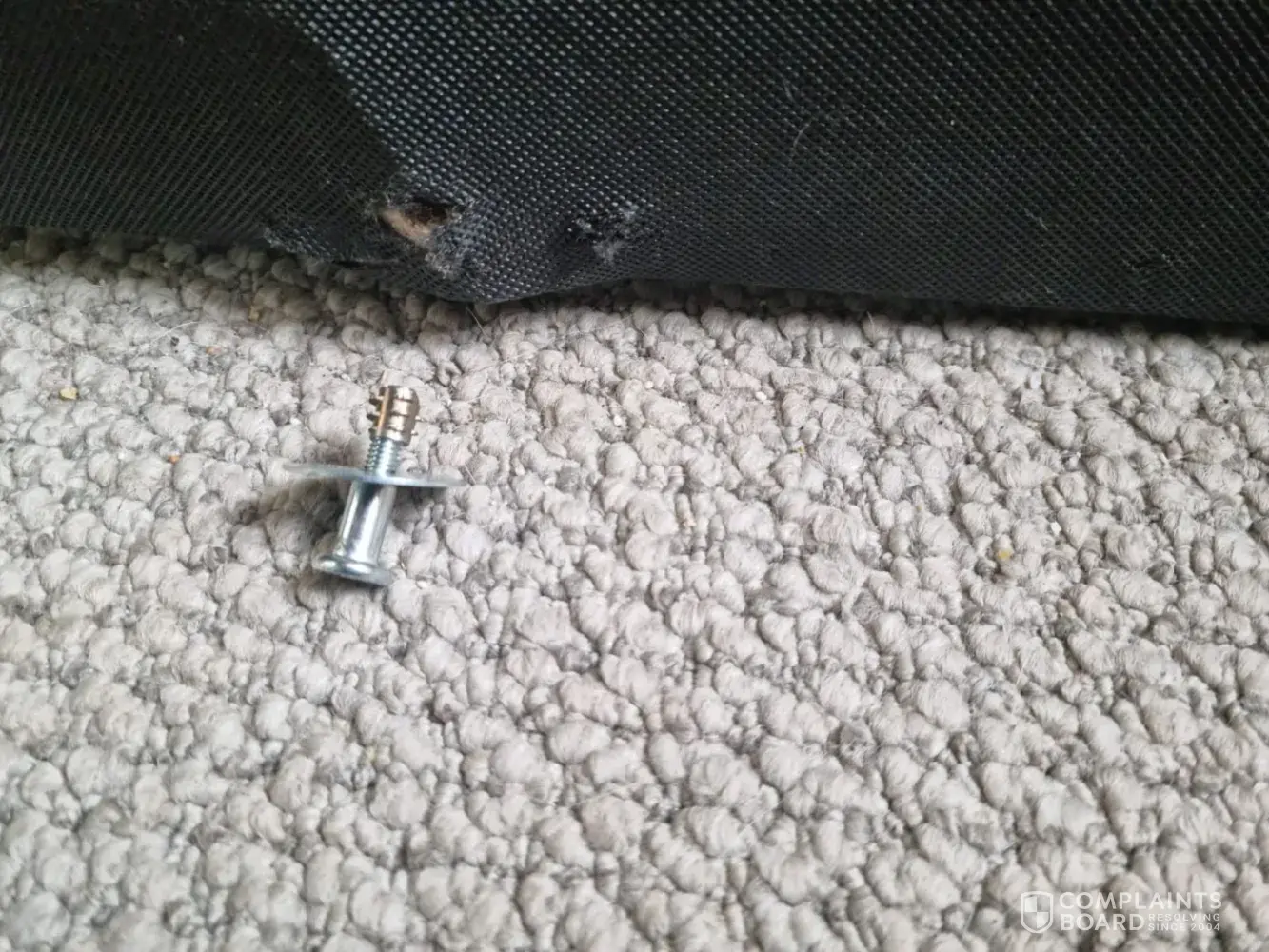 Additionally, after the maid cleaned behind the chair and moved the couch, both screws popped out from the other couch, indicating they were not properly secured.