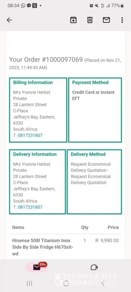 Read full complaint2 House & Home South Africa Reviews