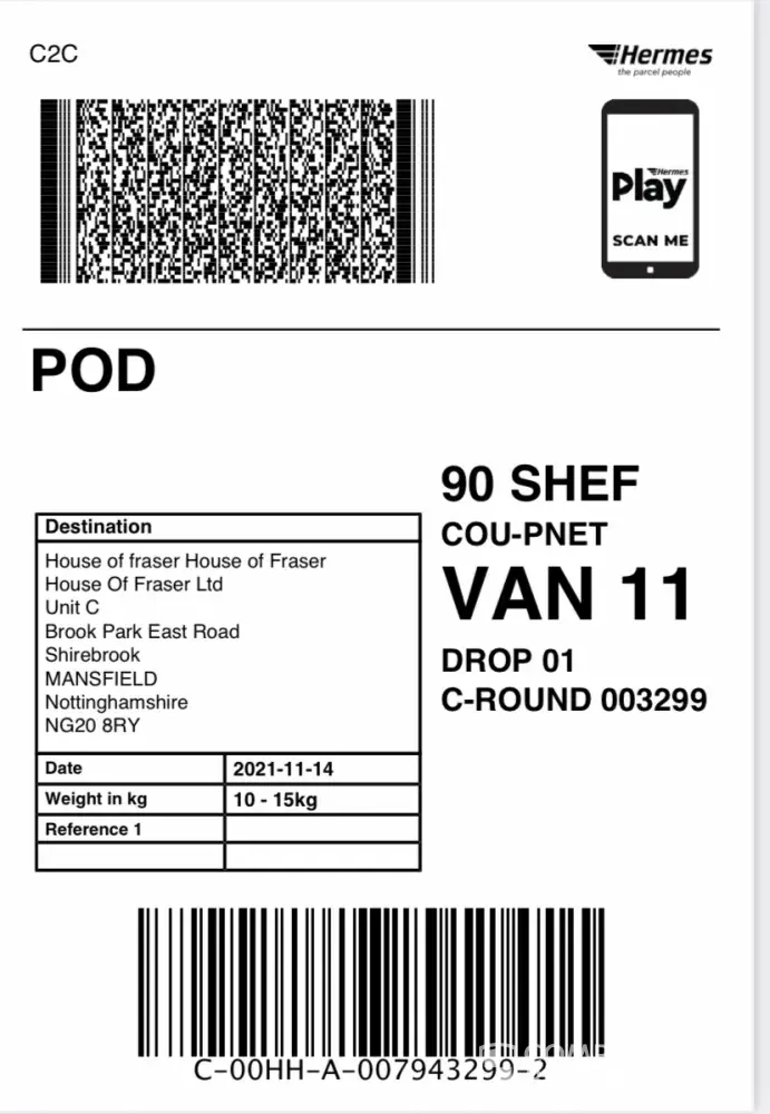 I placed an order on 23/11/22 Evri tracking said delivery issue 25/11/22 and it would be out the following day. I contacted House of Fraser on 30/11/22 when they were looking into what the problem was and are still looking into it 7/12/22