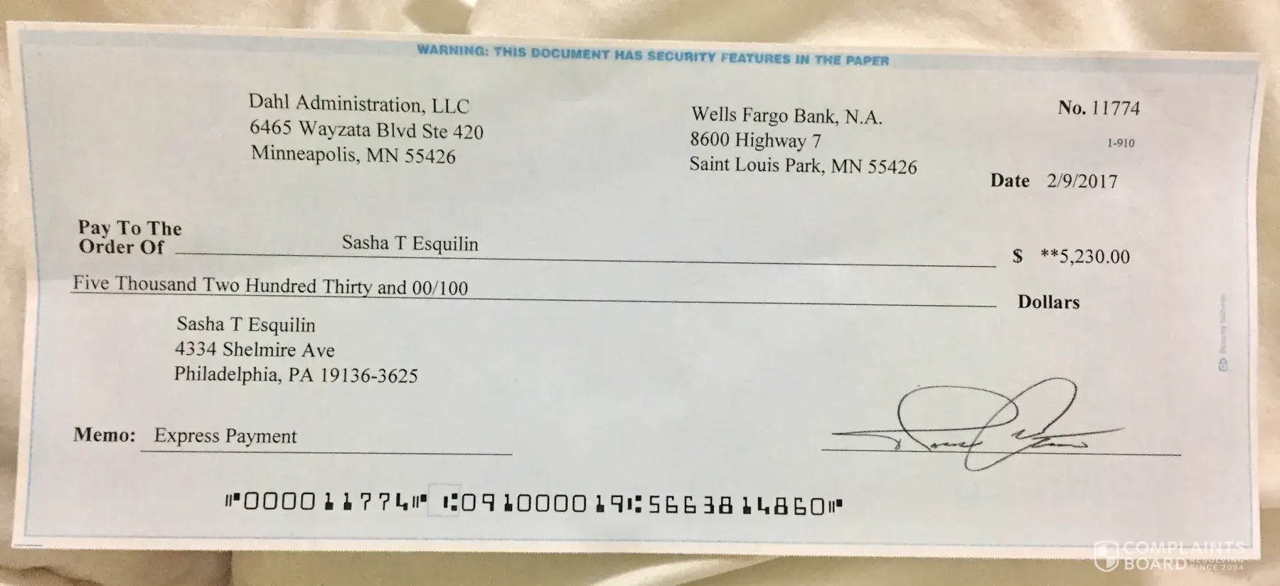 My name is Sasha Esquilin and I have been receiving emails from client who have wanted Home Staging service from me. The one client I have spoken to, she didn't seem like a scam at first. She sent me an email about her life and about her husband being a software Engineer and that they were moving from UK to New Jersey. So I was speaking to her for a month. Now the weird part is I have been receiving emails from some other potential client but their story line was the exact same way as my first client I was talking to. Also their husband was a software engineer moving from UK to the US. That's when i started getting suspicious about the email and the person emailing me. They also sent me a check for $5, 230 which was weird because my service is only $900 for the first client. Also the check came from Minneapolis and my clients are from New Jersey. I will attack the email I have received from these clients