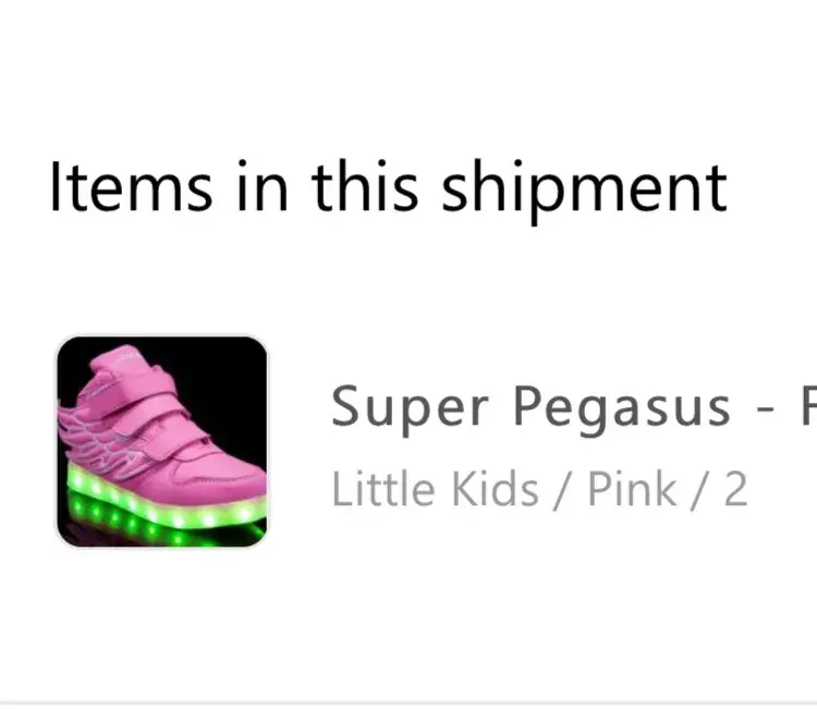 I ordered one pair of a model called Super Pegasus, size 2, pink... I received a complete different pair of shoes and the worst thing, they are damage, the lights of one of the shoes it doesn't work.
