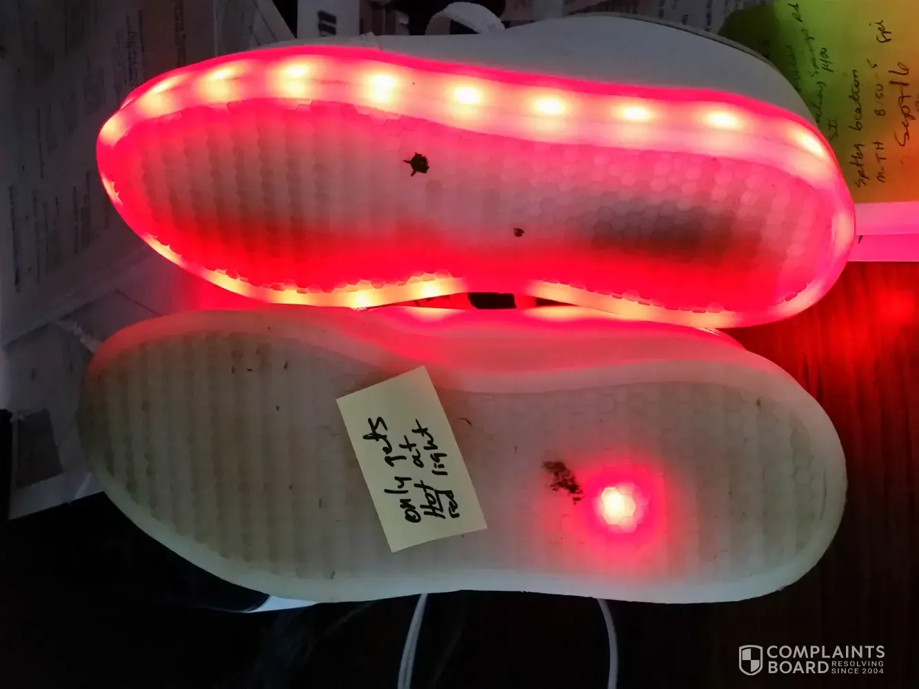 Attaching photos of the shoes. I also took a video of the thermometer while it was reading/increasing... it got to 111.2 degrees before the thermometer showed an error reading.