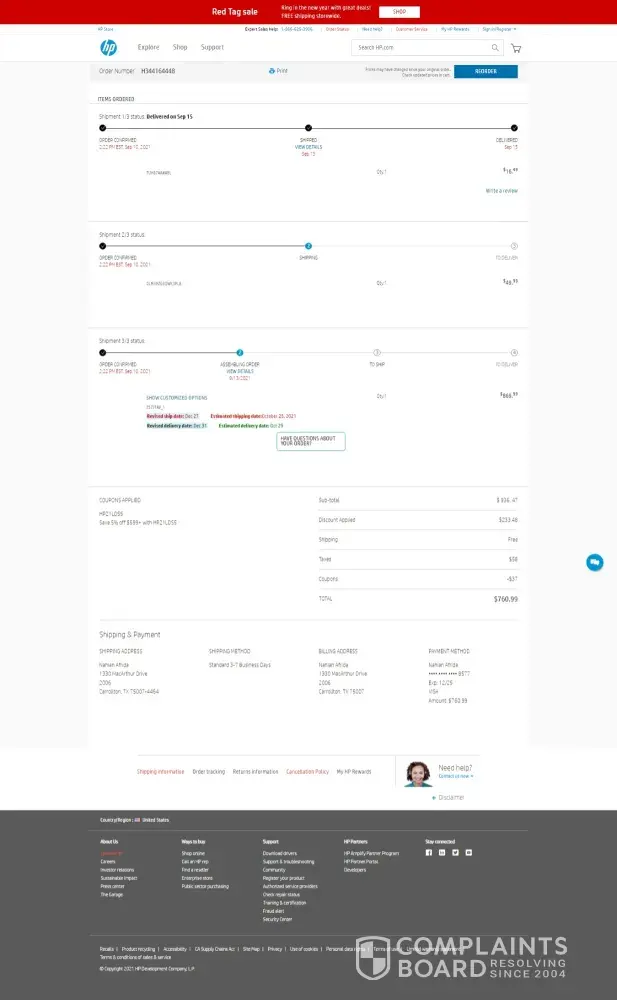 We ordered a gaming HP OMen 30L for $2, 500 as a christmas gift. It said a 2 week turnaround but after i completed the order it changed to Dec 29, 2022. Around the 27th or 28th another email changing it to Jan 5. I tried calling but each time I was on hold for over an hour and couldn't hold any longer. A few days later another email came moving ship date to Jan 10. After numerous attempts to reach hp by chat, email and phone, I had no choice but to wait until I could speak to someone. It took 3 hours and 45 mintues to reach a rep. She couldn't do much telling me it was ready to ship that day, but not what the website said plus it didn't matter at that point, I had been trying to reach them for weeks to cancel it. We found a comparable pc in stock at Best Buy and could not wait for a computer any longer. She got a supervisor on the phone who assured me we'll get all our money back and she will put the cancelation through in addition to a return to ship request in case it ships. An email confirming she subitted the return to shipper request arrived the next day on the 11th, and then Jan 12 we got an email saying the pc shipment is delayed again to Jan 18th. This seemed to be good news thinking it should speed up the cancelation and refund without any red tape. Two days later we get an email it shipped on Jan 14th . This can't be a mistake, they had plenty of time to stop this order and shipment, on top of telling us it was delayed another week anyway. They are playing games. I called Fedex today to see what's going on and they told me it's going to be here today and that HP never submitted a return to ship request. To add insult to injury HP actually put restrictions on the shipment, that nothing can be changed on the shipment or delivery. WTF? I filed a complaint with the attorney general and can't believe these companies are getting away with such unethical practices and incompetace. They clearly could have stopped this and did nothing. Now let's see what happens, while I am out $2, 500 and days upon days of stress and time wasted.