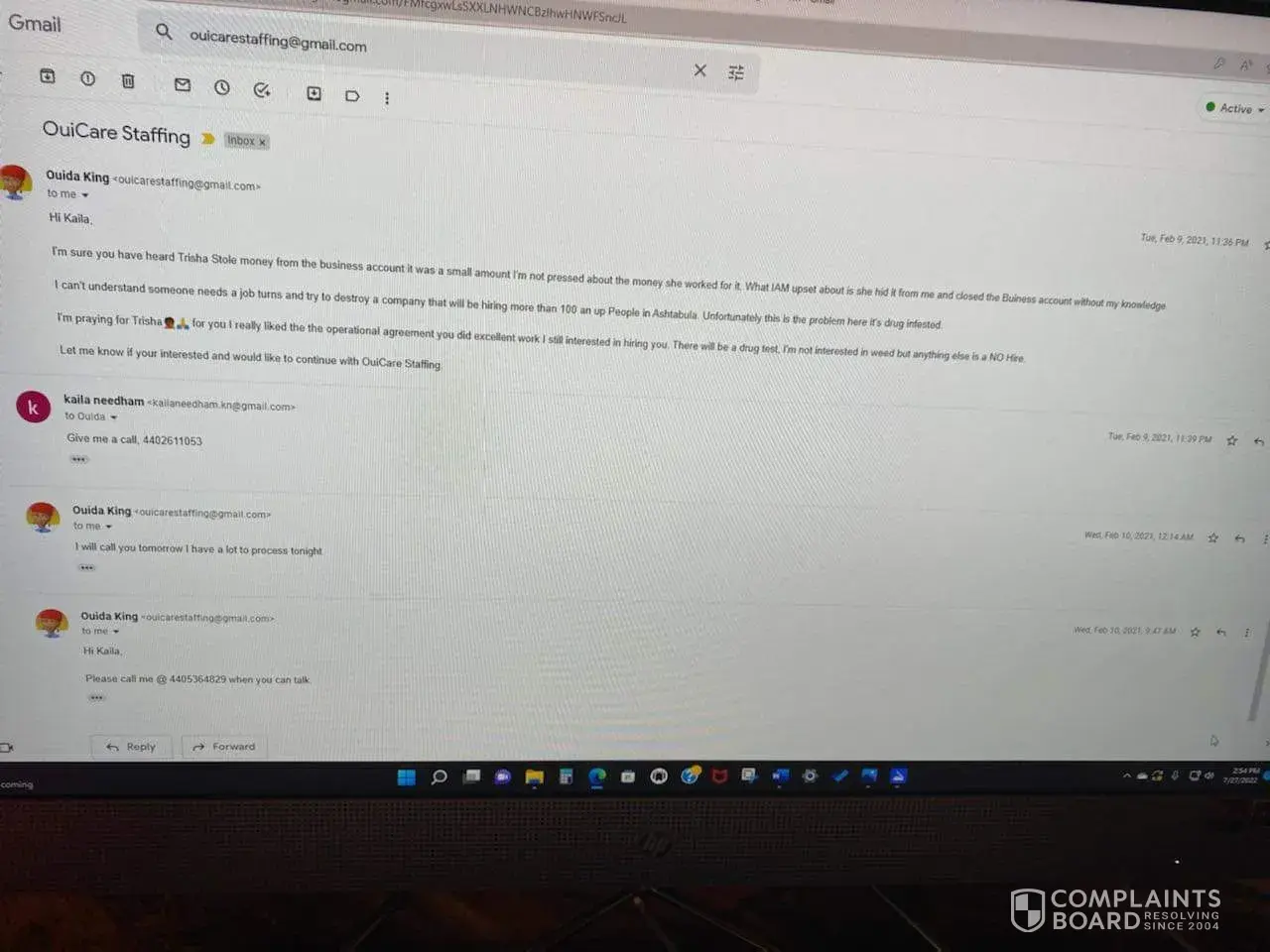 This woman has been fired from her last 4 jobs for taking money she was the HR Manager.Please call the companies yourself to find out a more detailed summery of Tricia Mullen Hoplight.She had also started a staffing agency and was not paying her employees.I have names and verification of that also.She has aggravated robbery from last year on her court records.She also got an EIN number and forged the woman's signature on the form online.Among other things.She has also used her employees information to try and obtain access to a few of our banks,apply for credit cards etc.She should not be around anyones personal information.The places where she was terminated from for money is sigma,Plastpro,Iten there's another one but I don't recal the name.Call and verify this information for yourself.I have attached a few documents.