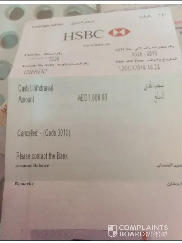 After my UAE visit, I return back to Pakistan Karachi and I submitted complaint to my Bank my bank take time 12 working weeks and again I submitted complaint also bank time take 12 working weeks, after complete the period the bank said the HSBC UAE bank is responsible of this payment.