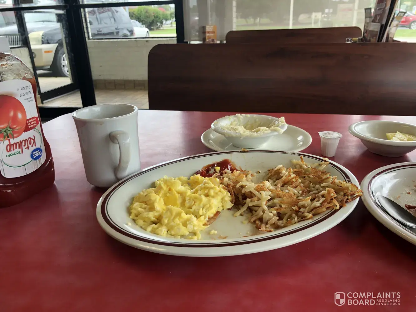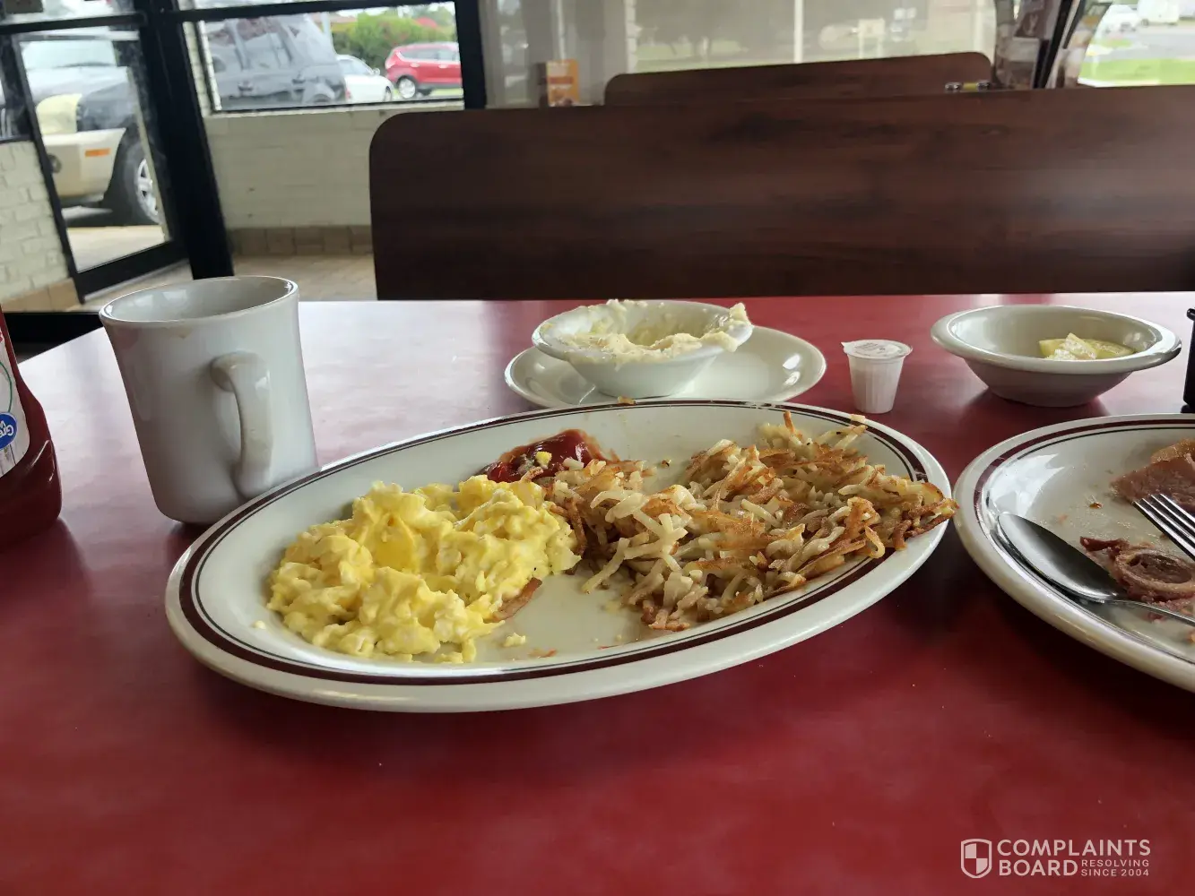 My complaint is regarding the service I received at the Huddle House in Lake City, SC. I entered your facility, waited for a server, inquired about the menu and ordered breakfast. I think it was the Big Breakfast Platter. I waited over 10 minutes for coffee and water. Then my actual breakfast arrived in portions. First, the country ham and grits arrived...