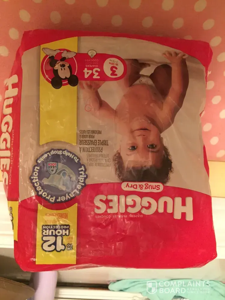 [protected] 5 and also in the front is says it has triple layer protection to help stop leaks. And they have Mickey Mouse character on them as well. I really hope this helps and you can gets this fixed this is very concerning as a parent. This is not the first time we have had problems with huggies. Our daughter is 7 months old and when we buy huggies and lay her down and she will wake up in the middle of the night drenched in pee because the diapers aren't lasting long at all. They don't have the "12" hour protection like it says we lay her down and she is up in three hours soaked in pee we just haven't been happy. We love the way they fit just wish they would last longer at night and like I said the gel is a little concerning.