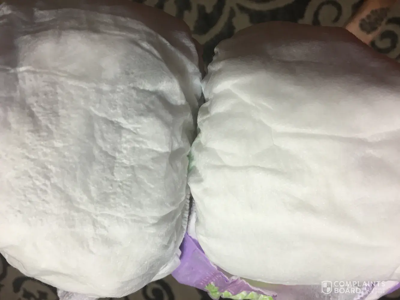 This is the third time my son's Huggies Overnites diaper has exploded overnight all over him. The inside gel that is supposed to absorb urine was in pieces stuck all over his belly, back and legs. After a third time I decided to write this complaint. There is nothing like being awake for 2 minutes and then having to give your child a bath while he screams the whole time because it isn't routine. The photo is of the exploded Higgies Overnite underneath a Luvs backwards. I do that to avoid my son taking off his diaper. But the exploded pieces are from the Huggies Overnite.