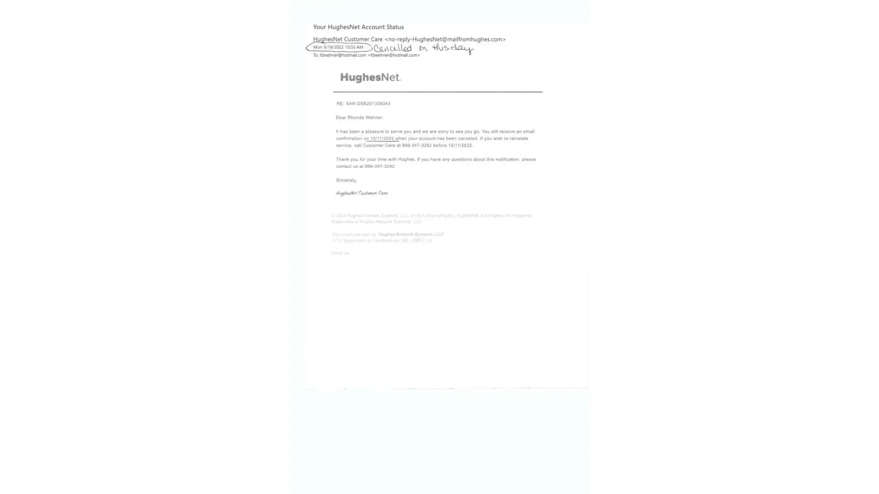 I sent the email below to HughesNet yesterday (7/13/22 @ 9:01 PM) evening: