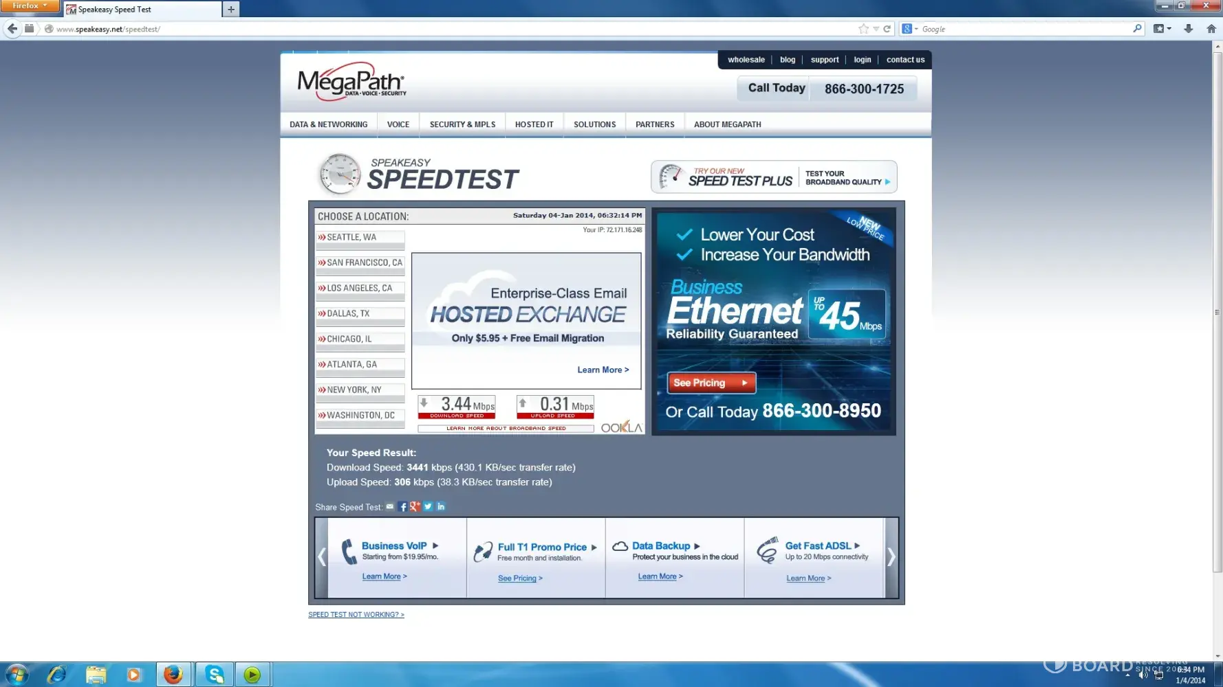 0.14 MBPS for download and 0.45 for upload. What a difference when the seller said is the same speed as Fios!