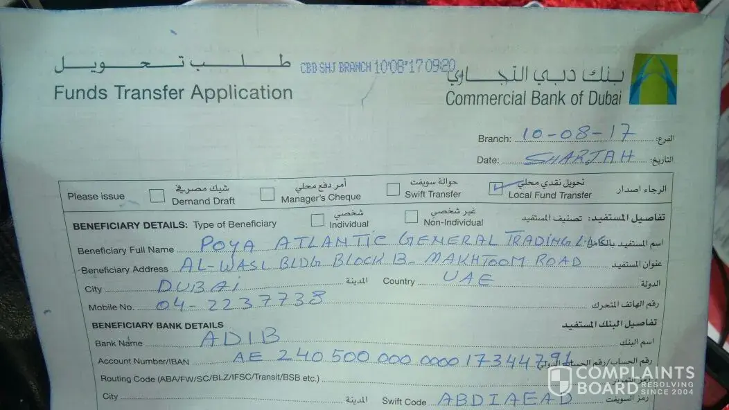 Cargo left the port and reached to Dubai on Tuesday 8th of August, and they went to release the cargo on Thursday, 10th of August and ask me to surrender the BL after receiving just a fake bank slip (attached). Once I received the BS then surrounded the BL and waiting to receive money in 3rd party account that we mentioned in our Invoice.