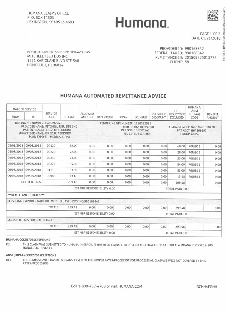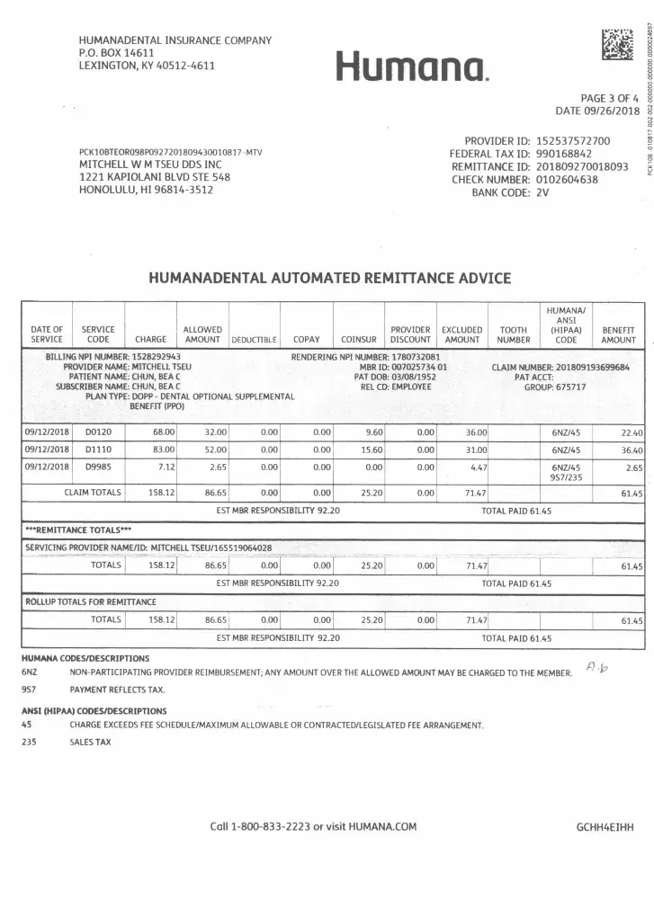 On behalf of Dr. Mitchell Tseu(tax id [protected])