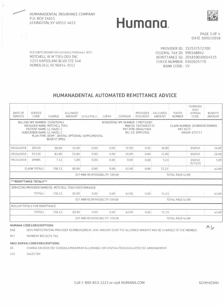 We have Humana dental insurance. It is a total scam. Wish I would have known what a rip of they are.