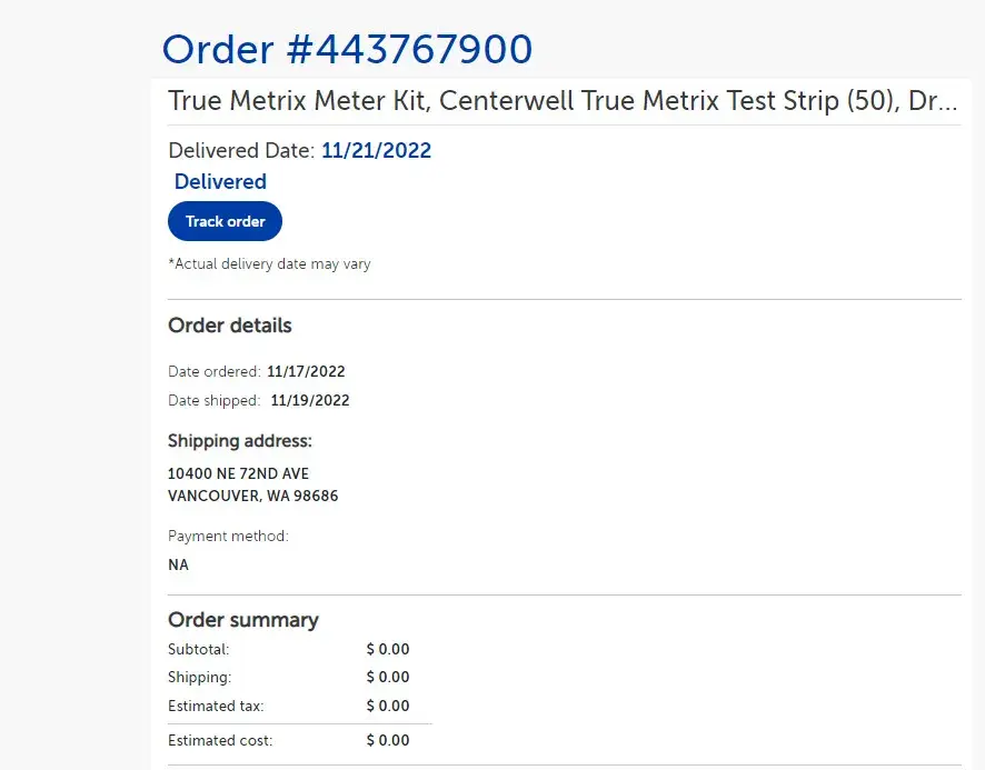 On or about 11/15/2022 I ordered One Touch Diabetic supplies online. On 11/19/2022 I received an email that they shipped (see attachments).