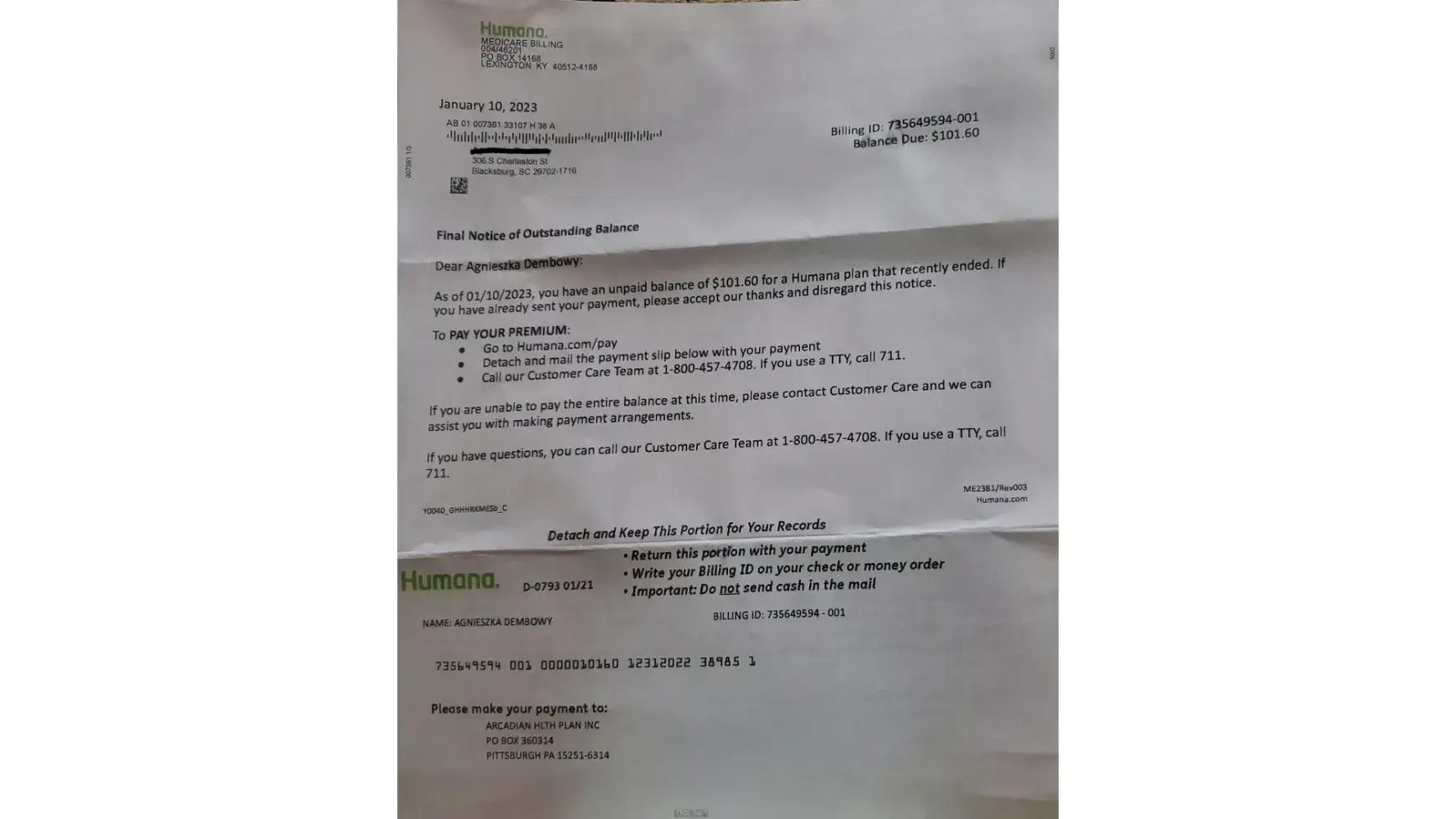 I have received a couple of bills, from Humana in which I have never had an account with. I believe this is a SCAM to steal $ from the elderly. Humana should be looked into these actions. Whom can I inform about this to investigate this. I am going to hold onto this Bill until Humana is fined or worse.