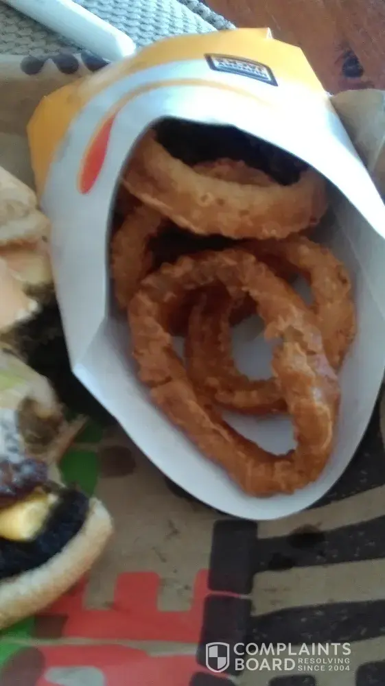 I purchased a double whopper with cheese meal, the bottom patty was burnt and inedible (photo attached) also the onion rings looked and tasted hours old, this was after I requested a fresh order of onion rings as the first lot looked even worse, this "fresh" batch took less than 30 seconds to be produced, I suspect they were just re-dipped in the oil, these also were thrown away. A very disappointing meal and for almost $20 I expected a much better experience