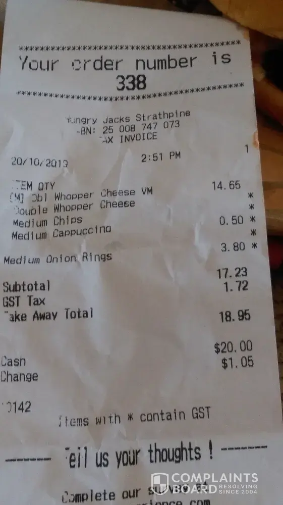 I bought a grilled chicken ceaser burger meal from lismore hungry jacks today.