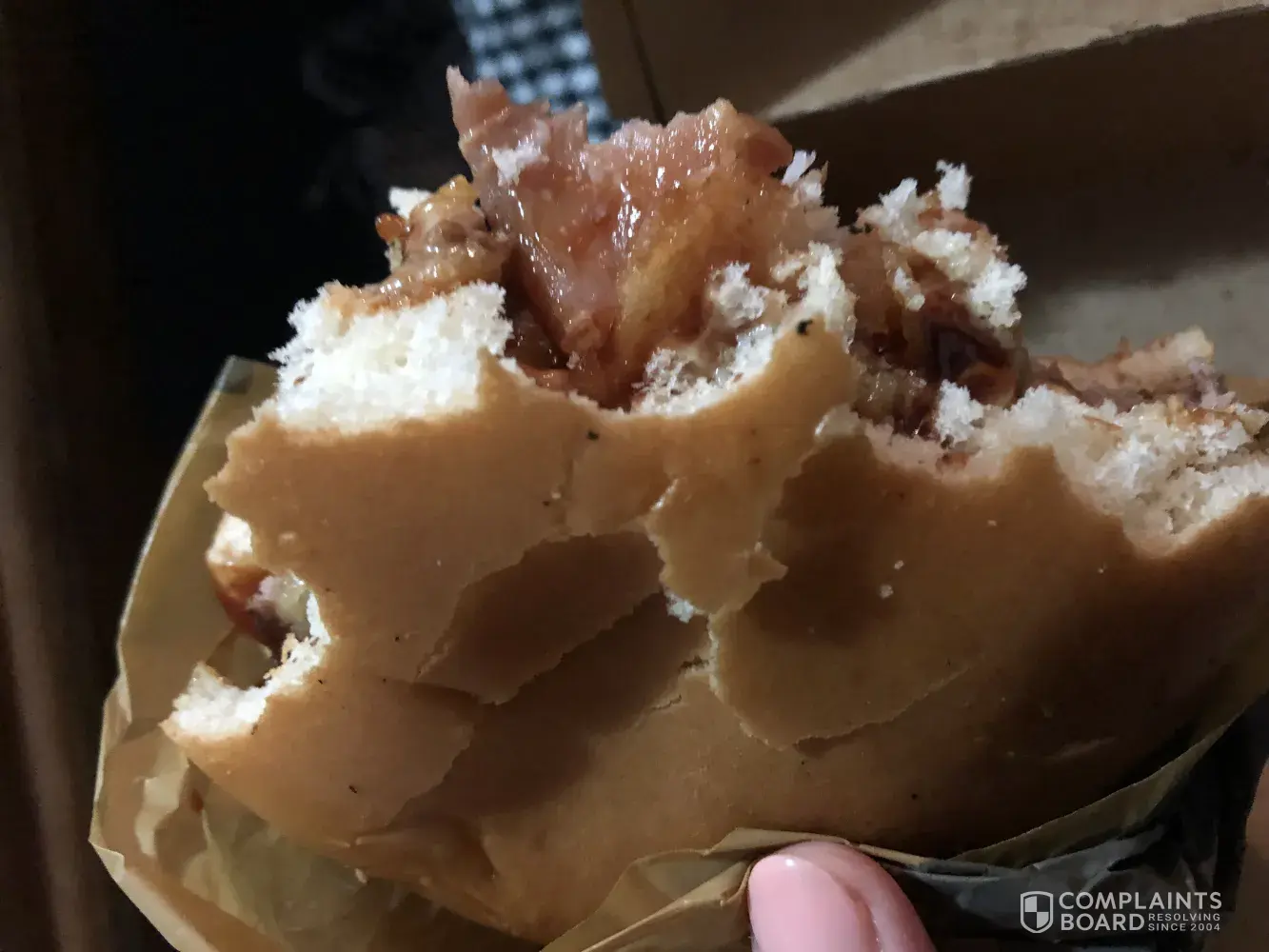 Our Burger was not able to be consumed took one bite and opened to notice the whole patty was burnt. Very black as seen in photos. We had to wait for our meal and now are not able to eat our dinner, because of how burnt our meal was. We don't have take away a lot but expect that when paid money time and care be put into our meal. Our meal will be great for our dog! Thanks