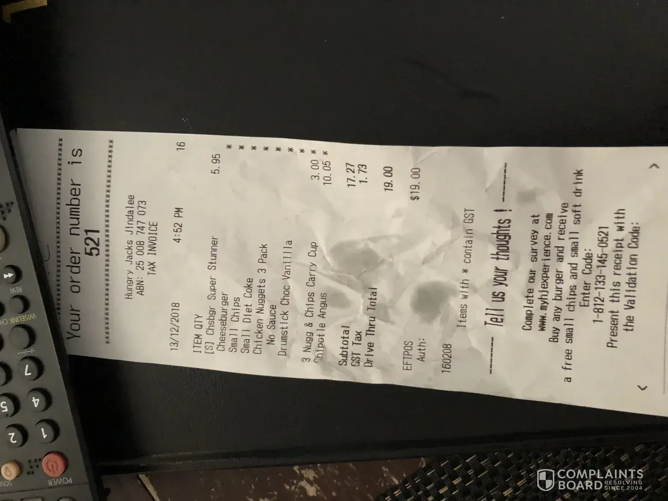 We were at hungry jacks north Mackay on the 12th November at six thirty pm