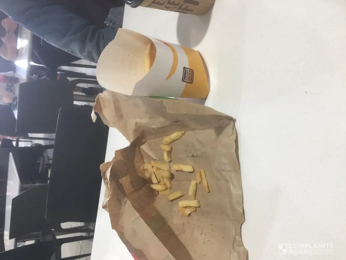 The large chips we ordered was only 2/3rd of the cup and the staff insisted it was how it should be.