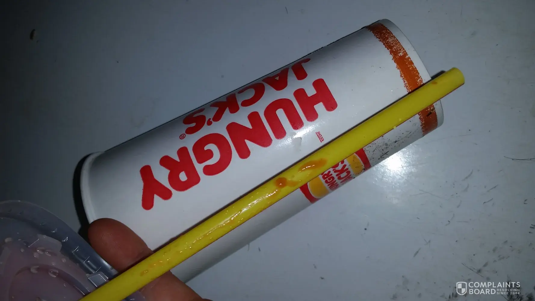 tomato sauce on straw of drink purchased in drive thru