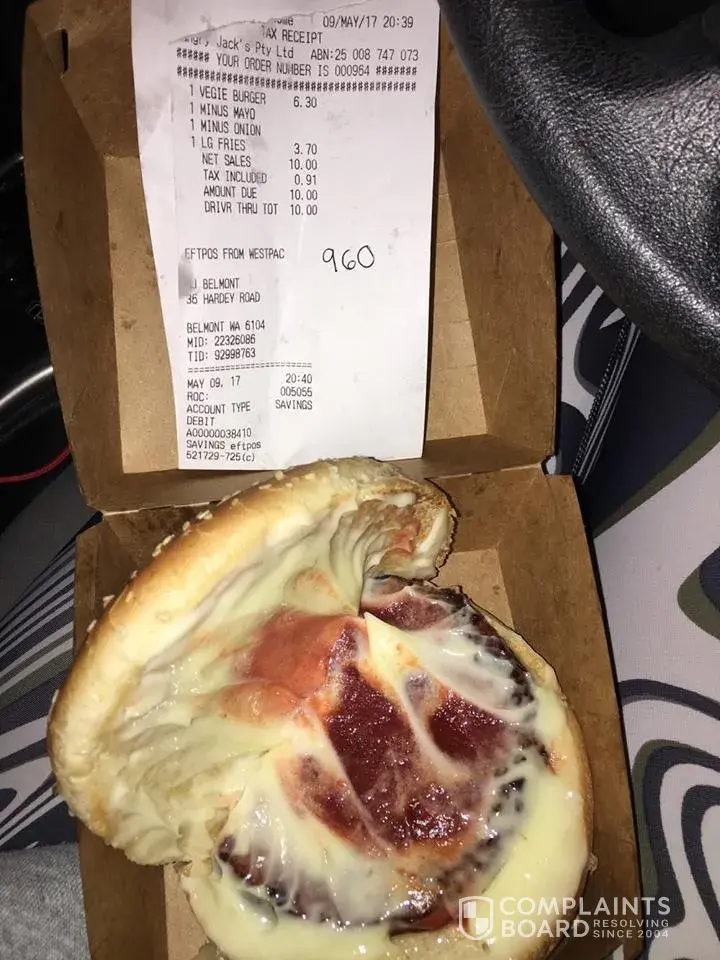 I went to hungry jacks Burpengary Queensland as I had been shopping I decided to go through drive threw I purchased a smokey angus and fries when I got home which is only 5 mins down the road sat down to eat my burger it was stone cold and the meat patty was burnt to a crisp so my experience with your company has left a very bad taste in my mouth and I don't think I will be visiting a hungry jacks for a very long time thank you Jean Druery