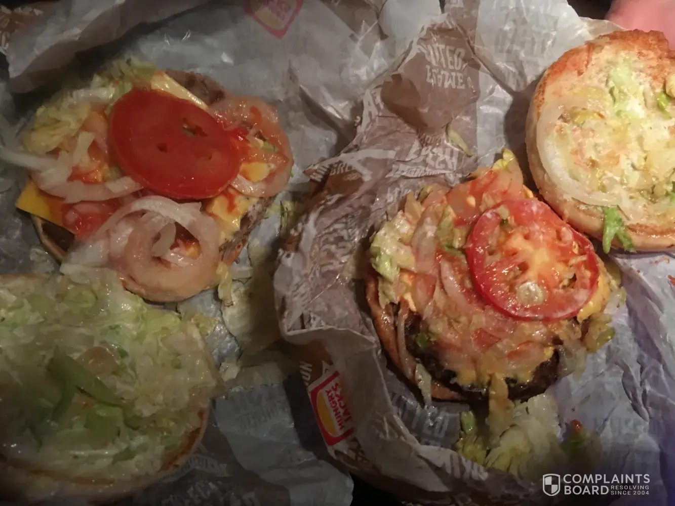 Every thing seemed fine, we collected our meals and off we went. We live 35km out of Toowoomba and once we had arrived home we tucked into our burgers only for my partner to find his whopper had Peri peri sauce, cheese and bacon. He was so disappointed as it was already 9pm and now he couldn't eat his dinner because it was too spicy. Everything else was fine other then that.