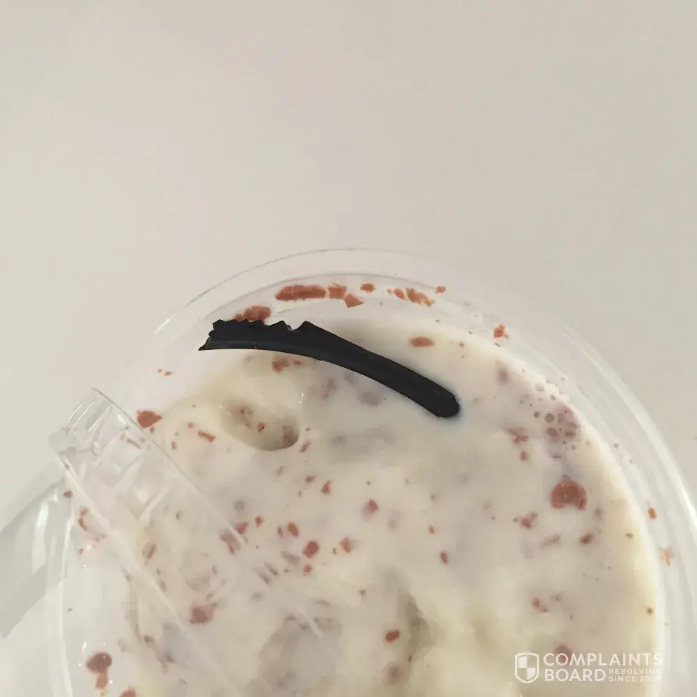 A 3 inch piece of plastic black tubing was found in my daughters ice cream. She nearly swallowed it.