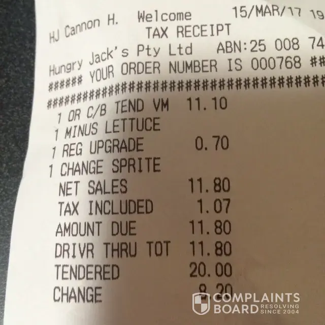 Once again, we go through that fast-food service (as we happen to lack time to eat at a decent hour) order the same stuff every single time and we are often confronted by a female who has zero listening skills... you correct her, ask her to repeat your order and she gets it all wrong, you correct her once again... comes the time to pay, all fine! no invoice unless you insist for one? comes the order rushed in a bag... literally shoved in your face almost meaning take this and gtfo! you take it and leave and what do you find once back home? the wrong stuff... basically, it does not matter if the order was double cheese burger or what if it is replaced by whatever else? this has occurred numerous times and management seems to think it is ok as this employee has been there for months and keeps doing the same inept service? oh, and by the way? when you put so bloody much salt in your chips that they actually cause mouth sores...? am considering going at the drive-thru, hire a friend of mine to actually do a profile labwork and see how much hungry jack's laxism is realistically causing harm. you do not seem to care what you do to your customers or have a sense of pride in what you do! if you did, you would actually revise how much a local manager can let employees pitch that much salt on french fries... you would perhaps revise the video surveillance footage taken from branches in order to check what is going on inside your restaurants... from now on, lack of time or not, hungry jack's does not deserve my hard earned money. go out, travel a bit in the world and see what is done in your "sister" franchise called burger king... come to think of it, you might as well just shut down. this lack of respect towards your customers is so appalling that I bet your financial standings inevitably will start to reflect that amazing customer service and caring of yours.