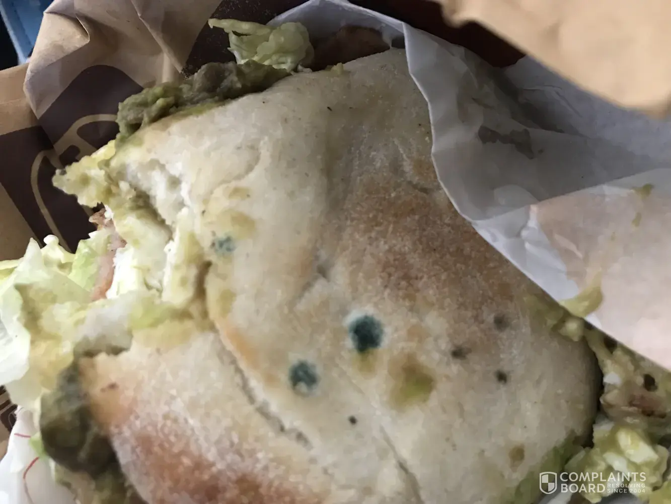 I went to the upper coomera store this morning at about 10am I went through the drive through and ordered a Turkish BLAT. I opened the packaging and took a bite then realized there was mould on the bun and the avocado was all brown and it was cold. I'm disgusted and thinking about actually having a bite out of that just makes me sick. Obviously the staff need more training or need to open there eyes and actually look at what they are serving.