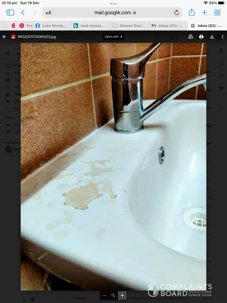 Please see attached and then again the following week there was still a similarly stained sink in the ladies room.